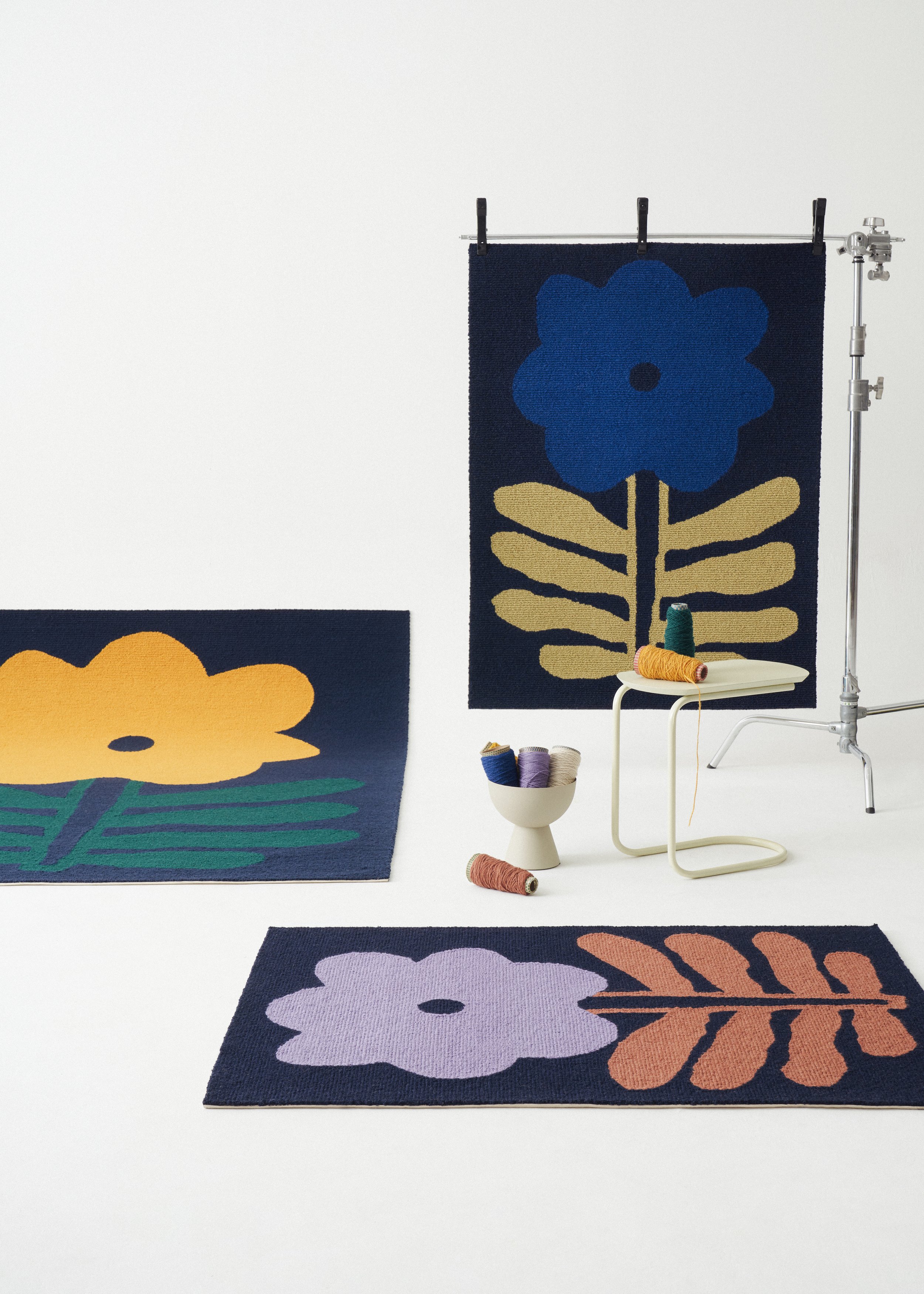 Known for her bold patterns and expressive use of colour, Claire brings her signature warmth and playfulness to this new medium. Each piece invites a sense of connection and creative expression, designed to ground a space and spark joy.